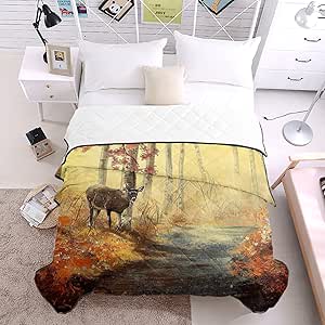 LBDOMOV All Season Down Alternative Duvet Soft Bed Blanket, Autumn Maple Forest Path in Woodland and Deer Durable Lightweight Comforter Quilt Insert ...