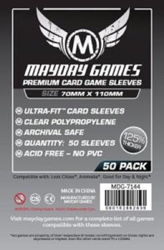 Mayday Games - Card Sleeves & Tabletop Games For Families Card Sleeves - Guaranteed to Fit Perfectly. Card Game Card Sleeves (63.5x88mm) $2.75 USD. Select Options. Standard USA Card Sleeves (56x87mm) $2.75 USD. Select Options. Mini Euro Card Sleeves (45x68mm) $2.00 USD.
